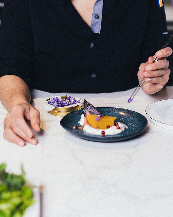 In der Belétage steht Gemüse im Zentrum – selbstbewusst und kompromisslos. Parvin Razavi kocht aus tiefer persönlicher und kultureller Verwurzelung heraus. Ihre Küche erzählt von persischen Wurzeln, von Migration, von Selbstbehauptung – und von einer großen Liebe zu kräftigen Aromen.