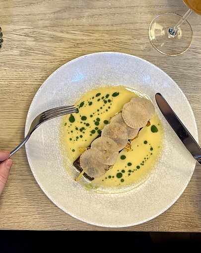 Regionale Produkte werden nicht dekoriert, sondern auf ein neues Niveau gehoben. Subtile internationale Einflüsse treffen auf klare Technik, ohne Dogmen, mit viel Selbstverständlichkeit. Begleitet von Wirtshausmusik entsteht ein Abend, der nicht drängt, sondern trägt. Come hungry. Stay curious.